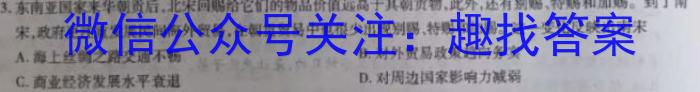 3.东南亚国家来华朝贡后,北宋回赐给它们的物品价值远高于其朝贡物,此外,还有别赐、特赐和加赐。到了南宋,政府更注重发展民间海外贸易,在朝贡贸易中也很少出现别赐,特赐和加赐。这一变化反映出南宋A.海上丝绸之路交通不畅B.对外贸易政策趋向务实C.商业经济发展水平衰退D.对周边国家影响力减弱
