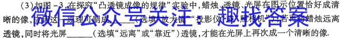 (3)如图-3,在探究“凸透镜成像的规律”实验中,蜡烛、透镜、光屏在图示位置恰好成清晰的像,应用这一原理可制成(选填“放大镜”“投影仪”或“照相机”);若再将蜡烛远离透镜,同时将光屏(选填“远离”或“靠近”)透镜,才能在光屏上再次成一个清晰的像.