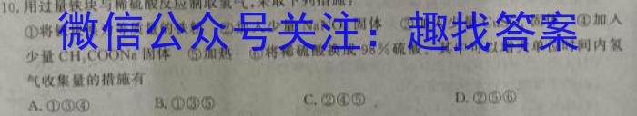 10.用过量铁块与稀硫酸反应制取氢气,采取下列措施:①将铁块换为等质量的铁粉②加人少量NaNO3固体③加人少量CuSO4固体④加人少量CH3COONa固体⑤加热⑥将稀硫酸换成98%硫酸,其中可以增大单位时间内氢气收集量的措施有A.①③④B.①③⑤C.②④⑤D.②⑤⑥