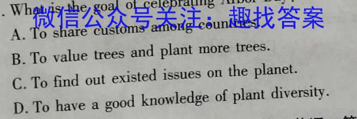 30. What is the goal of celebrating Arbor Day?A.To share customs among countries.B.To value trees and plant more trees.C. To find out existed issues on the planet.D. To have a good knowledge of plant diversity.