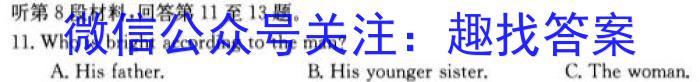 听第8段材料,回答第11至13题。11.Who is bright according to the man?A.His father. B.His younger sister. C.The woman.