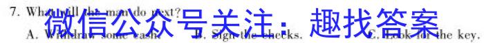 7.What will the man do next?A.Withdraw some cash.B.Sign the checks. C.Look for the key.