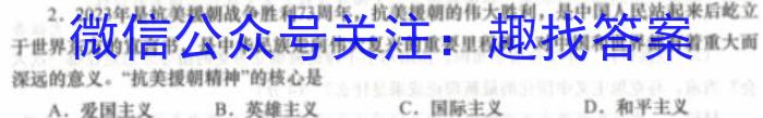 2.2023年是抗美援朝战争胜利73周年,抗美援朝的伟大胜利,是中国人民站起来后屹立于世界东方的宣言书,是中华民族走向伟大复兴的重要里程碑,对中国和世界都有着重大而深远的意义。“抗美援朝精神”的核心是A.爱国主义B.英雄主义C.国际主义D.和平主义