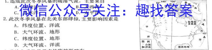 A.印度洋B.大西洋C.北冰洋D.太平洋2.此次冬季风暴在北美东部肆掠,主要影响因素是A.纬度位置、洋流B.大气环流、地形C.纬度位置、地形D.大气环流、洋流