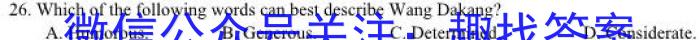 26.Which of the following words can best describe Wang Da kang?A.Humorous.B.Generous. C.Determined. D.Considerate.