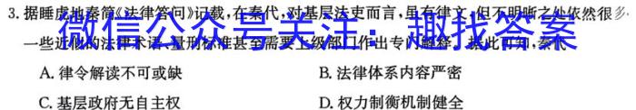 3.据睡虎地秦简《法律答问》记载,在秦代,对基层法吏而言,虽有律文,但不明晰之处依然很多一些近似的法律术语、量刑标准甚至需要上级部门作出专门解释。据此可知,秦代A.律令解读不可或缺B.法律体系内容严密C.基层政府无自主权D.权力制衡机制健全