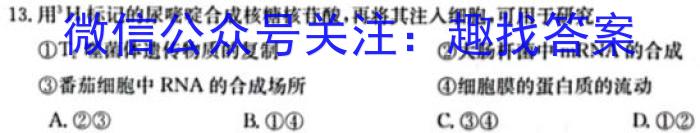 13.^3H标记的尿嘧啶合成核糖核苷酸,再将其注入细胞,可用于研究噬菌体遗传物质的复制1T2②大肠杆菌中mRNA的合成③番茄细胞中RNA的合成场所A.②③B.①④④细胞膜的蛋白质的流动C.③④D.①②