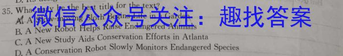 35.What may be the best title for the text?A A S low-moving Sloth Begins Life in a GardenowB.A New Robot Helps Raise Endangered AnimalsC.A New Study Aids Conservation Efforts in AtlantaD.A Conservation Robot Slowly Monitors Endanger e