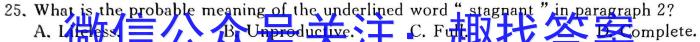 25.What is the probable meaning of the underlined word“ stagnant ”in paragraph 2?A.Lifeless. B.Unproductive. C.Full. D.Complete.