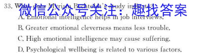 33.What does Myriam Bechtold t’s study indicate?A.Emotional intelligence helps in job interviews.B.Greater emotional cleverness means less trouble.C.High emotional intelligence may cause suffering.D.Psychological wellbeing is related to various factors.