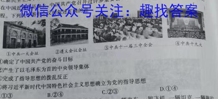 6.在中国近现代历史上,召开过许多重要会议,深刻影响着中国革命和建设的程。下列关于图中会议的叙述正确的是①确定了的奋斗目标②②产生了以为首的中央领导集体③完成了指导思想的拨乱反正④将新时代中国特色社会主义思想确立为党的指导思想A.①③B.②④C.②③D.①④
