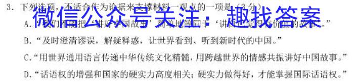 3.下列选项,不适合作为论据来支撑材料一观点的一项是(3分)A.“我们不能把‘讲好中国故事’简单地等同于‘讲自己觉得有价值的故事’。”B.“及时澄清谬误,解疑释惑,让世界看到、听到新时代的中国。”C.“用世界通用语言传递中华传统文化精髓,用跨越世界的情感共振讲好中国故事。”D.“话语权的增强和国家的硬实力高度相关;硬实力做得好,才能掌握国际话语权。”