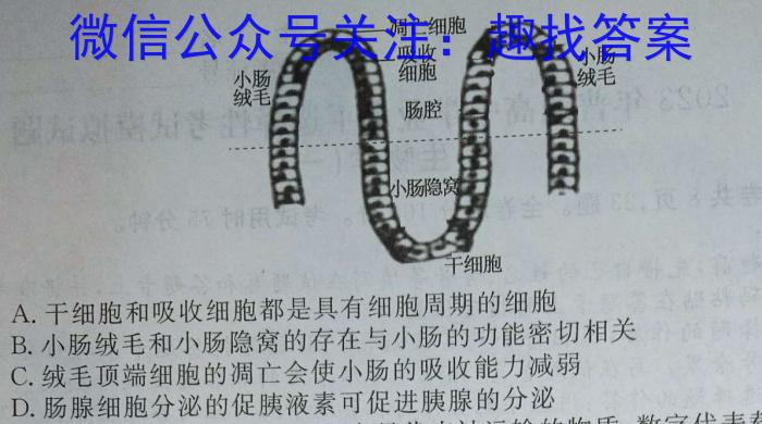 A.干细胞和吸收细胞都是具有细胞周期的细胞B.小肠绒毛和小肠隐窝的存在与小肠的功能密切相关C.绒毛顶端细胞的凋亡会使小肠的吸收能力减弱D.肠腺细胞分泌的促胰液素可促进胰腺的分泌