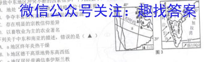 5.导致中东地区冲突不断的因素很多,下列因素中,不是其主要原因的是(▲)A.地处“五海三洲之地”,战略地位十分重要B.争夺丰富的石油资源和有限的水资源C.存在明显的宗教信仰差异D.以畜牧业为主的农业著名6.下列关于中东和南亚的描述,错误的是(▲)