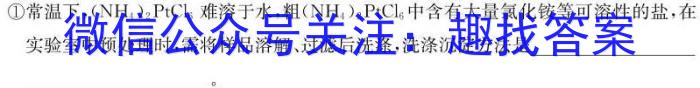 ①常温下,(NH4)2PtCl6;难溶于水,粗(NH4)2PtCl6中含有大量氯化铵等可溶性的盐,在实验室中预处理时,需将样品溶解、过滤后洗涤,洗涤沉淀方法是。