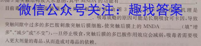 (3)图3是突触结构放大示意图,其中MNDA的功能有。目前毒品可卡因是最强的天然中枢兴奋剂,由图3可知,可卡因的作用机理是。吸毒成瘾的原因可能是长期吸食可卡因,导致突触间隙中过多的多巴胺刺激突触后膜细胞,使突触后膜上的MNDA(填“增多”、“减少”或“不变”),一旦停止吸食,突触后膜的多巴胺作用效应会减弱,吸毒者需要吸人更大剂量的毒品,从而造成对毒品的依赖。
