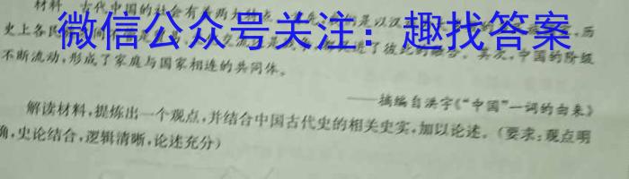 20.阅读材料,完成下列要求,(12分)材料古代中国的社会有着两大特点。首先,我们是以汉族为大多数的多民族国家,历史上各民族之间不管是贸易,文化交流还是战争,都促进了拔此的融合。其次,中国的阶级不断流动,形成了家庭与国家相连的共同体,—搞编自洪宇《“中国”一词的由来》解读材料,提炼出一个观点,并结合中国古代史的相关史实,加以论述,(要求:观点明确,史论结合,逻辑清晰,论述充分)