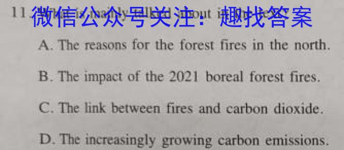 11. What is mainly talked about in the text?A. The reasons for the forest fires in the north.B. The impact of the 2021 bo real forest fires.C. The link between fires and carbon dioxide.D. The increasingly growing carbon emissions.