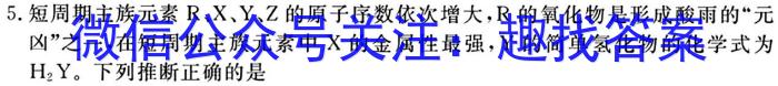 5.短周期主族元素R、X、Y、Z的原子序数依次增大,R的氧化物是形成酸雨的“元凶”之一,在短周期主族元素中X的金属性最强,Y的简单氢化物的化学式为H2Y。,下列推断正确的是