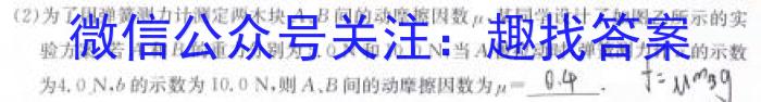 (2)为了用弹簧测力计测定两木块A、B间的动摩擦因数某同学设计了如图乙所示的实验方案.若A和B的重力分别为5.0N和10.0N,,当A被拉动时,弹簧测力计a的示数为4.0N,b的示数为10.0N,则A、B间的动摩擦因数为0.4f=wmog