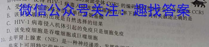 9.少数数人人的某地区少数人的一种免疫细胞的表面受体CCR5的编码基因发生突变,导致受体CR5CCR5CCR5结构改变,使得HIV-1病毒入侵该免疫细胞的几率下降。下列有关叙述正确的是A.受体CCR5的基本组成单位是氨基酸B.该突变基因的出现是自然选择的结果的C.HIV-1病毒侵入机体引起的免疫只是细胞免疫D.该免疫细胞是吞噬细胞或巨噬细胞