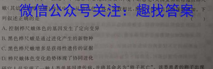 6.从19世纪中叶到20世纪中叶,随着工业化的发展,环境不断恶化,英国曼彻斯特地区桦尺娥(其幼虫称桦尺蠖)种群中,与从前浅色个体占多数相比,黑色个体所占比例逐渐增加。下()列叙述正确的是A.控制桦尺蛾体色的基因发生了定向变异C.黑色桦尺蛾增多是获得性遗传的证据B.黑色桦尺蛾是通过进化产生的新物种D.桦尺蛾体色变化趋势体现了协同进化