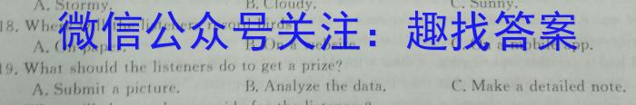 A. Stormy.B.Cloudy. C.Sunny.18.Where will the listeners record birds?A. On paper. B. On a website. C. On a mobile app.19.What should the listeners do to get a prize?A. Submit a picture.B. Analyze the data.C. Make a detailed note.
