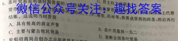 晋D.君主权力的弱化6.茶叶贸易是明清时期晋商的一大支柱产业一些旅蒙晋商的砖茶有时可以在市场上代替砖货币进行交易。蒙古牧民将买卖的马、牛、羊、骆驼、药材等,換算成晋商的砖茶,然后再行结账。这说明当时晋商A.具有极高的商业声誉C.主要与蒙古牧民贸易B.茶叶质量独一无二D.垄断全国茶叶贸易