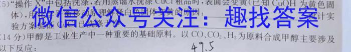 CuCl(5)“操作X”中包括洗涤,若用蒸馏水洗涤CuCl粗品时,表面会变黄(已知CuOH为黄色固CuOH体),用化学平衡移动原理解释白色固体变黄的原因:;设计实CuCl验方案验证CúC已洗涤干净:。砂原CO、CO2、H219.(14分)甲醇是工业生产中一种重要的基础原料。以CO、CO,H为原料合成甲醇主要涉及以下反应:49.5