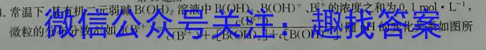 14.常温下,某有机二元弱碱B(OH)2溶液中B(OH)2、B(OH)^+、B^2+的浓度之和为0.1molL^-1,微粒的分布分数如8(B^2+)=c(B^2+)c(B^2)+c[B(OH)2]+c[B(OH)^+]随pH的变化关系如图所
