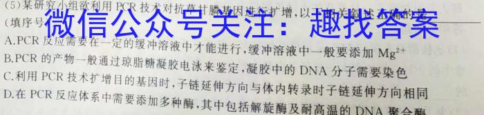 (5)某研究小组欲利用PCR技术对抗草甘膦基因进行扩增,以下相关叙述正确的是(填序号)。A.PCR反应需要在一定的缓冲溶液中才能进行,缓冲溶液中一般要添加B.PCR的产物一般通过琼脂糖凝胶电泳来鉴定,凝胶中的DNA分子需要染色C.利用PCR技术扩增目的基因时,子链延伸方向与体内转录时子链延伸方向相同D.在PCR反应体系中需要添加多种酶,其中包括解旋酶及耐高温的DNA聚合酶
