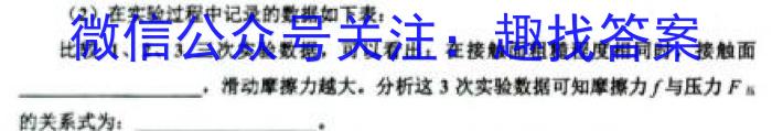 (2)在实验过程中记录的数据如下表:比较1、2、3三次实验数据,可以看出:在接触面粗糙程度相同时,接触面,滑动摩擦力越大,分析这3次实验数据可知摩擦力f与压力F的关系式为:.