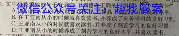 4.文中画波浪线的句子有语病,下列修改正确的一项是(13(2分)A.王亚南从小的时候就喜欢读书,并提高了刻苦学习的良好水平。B.在王亚南从小的时候就喜欢读书,并养成了刻苦学习的良好习惯。C.王亚南从小的时候就喜欢读书,并养成了刻苦学习的良好习惯。D.王亚南从小的时候养成了刻苦学习的良好水平,并喜欢读书。