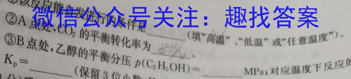 ②A点处,CO2①该反应能自发进行的条件是(填“高温”、“低温”或“任意温度”)。的平衡转化率为高)。③B80%Kp=③B点处,乙醇的平衡分压p(CH,OH)=MPa;对应温度下反应p(C2H5OH)=应的的