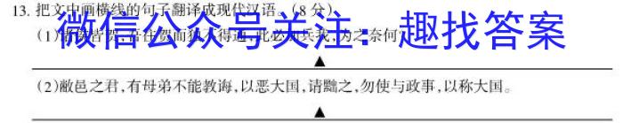 13.把文中画横线的句子翻译成现代汉语。(8分)(1)诸侯皆贺,吾往贺而独不得通,此必加兵我,为之奈何?▲(2)敝邑之君,有母弟不能教诲,以恶大国,请黜之,勿使与政事,以称大国。▲
