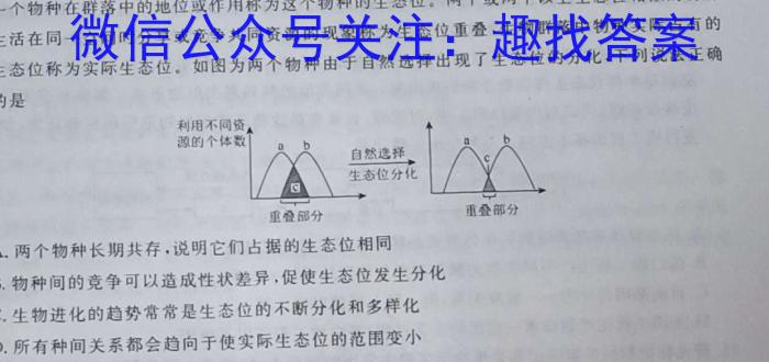 18.一个物种在群落中的地位或作用称为这个物种的生态位。两个或两个以上生态位相似的物种生活在同一空间时分享或竞争共同资源的现象称为生态位重叠,生物群落中物种实际占有的生态位称为实际生态位。如图为两个物种由于自然选择出现了生态位的分化,下列说法正确的是A.两个物种长期共存,说明它们占据的生态位相同B.物种间的竞争可以造成性状差异,促使生态位发生分化C.生物进化的趋势常常是生态位的不断分化和多样化D.所有种间关系都会趋向于使实际生态位的范围变小