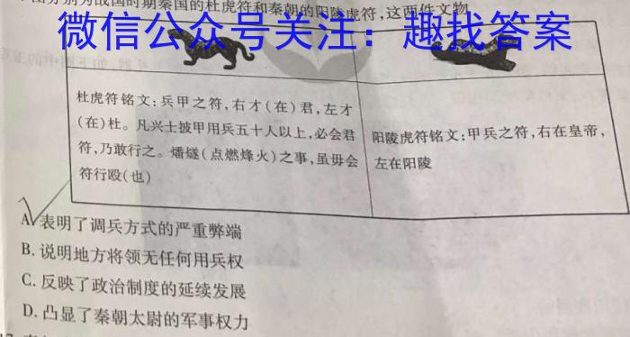 16.下图分别为战国时期秦国的杜虎符和秦朝的阳陵虎符,这两件文物A表明了调兵方式的严重弊端B.说明地方将领无任何用兵权C.反映了政治制度的延续发展D.凸显了秦朝太尉的军事权力