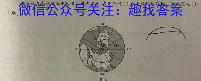 一架飞机在春分日正午从图5甲地出发,匀速飞行12个小时到达乙地。据此完成11∼12题。90^45^180^甲90^图5