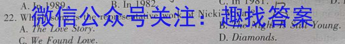 22.Which song is the representative work of Nicki Min aj?A. The Love Story.B. The Night IsStill Young.C.We Found Love.D.Diamonds.