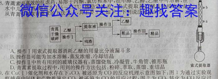 水吊否苹不溶,熔点为156157^C,,热稳定性差。索式提取器乙醚连续浸取法是从青蒿中提取青蒿素的方法之一,其主要工艺如下。下列说法正确的是aA.操作工用索式提取器消耗乙醚的用量比分液漏斗多B.操作Ⅲ可能为加水溶解,蒸发浓缩、冷却结晶C操作Ⅱ中所有用到的玻璃仪器有:蒸馏烧瓶、冷凝管、牛角管、锥形瓶C.操作Ⅱ中所有到的用到的操作方法包括:粉碎、萃取、蒸馏、重结晶索式提取器