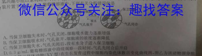 3.某兴趣小组以紫鸭跖草叶片下表皮为材料制作临时装片,观察气孔开放的原理,结果如图所示。现将装片置于0.3g/mL葡萄糖溶液中,下列有关分析错误的是保卫细胞保卫细胞失水吸水气气孔张开开气孔合A.当保卫细胞失水时,气孔关闭,细胞吸水能力逐渐增强B.当保卫细胞吸水时,气孔张开,细胞液的浓度逐渐降低C当保卫细胞失水,气孔关闭后,没有水分子进人保卫细胞D.0.3g/mL葡萄糖溶液中持续观察一段时间,气孔先闭合后开启