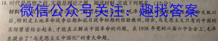 18.时代是思想之母,实践是理论之源。阅读材料,完成下列要求。(12分)材料一在长期的探索过程中,特别是在延安时期,和我们党深刻总结大革命失败以后,特别是土地革命战争后期和抗日战争初期的经验教训,指出,只有同中国的实际紧密结合起来,才能真正解决中国革命的问题。在1938年党的六届六中全会上,提出了“中国化”的重大命题。