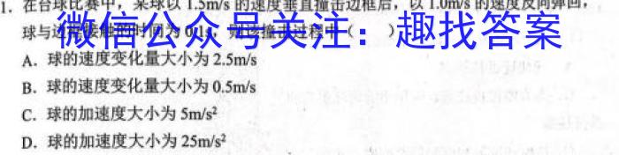 11.在台球比赛中,某球以1.5m/s的速度垂直撞击边框后,以1.0m/s的速度反向弹回,球与边框接触的时间为0.1s,则该撞击过程中()A.球的速度变化量大小为2.5m/sB.球的速度变化量大小为0.5m/sC.球的加速度大小为5m/s^2D.球的加速度大小为25m/s^2