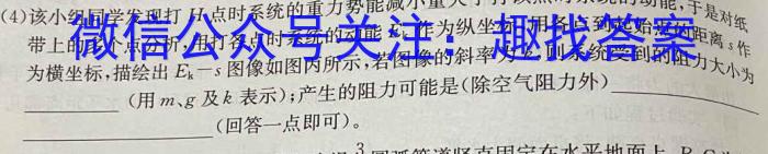 (4)(4)该小组同学发现打H点时系统的重力势能减小量大于打该点时系统的动能,于是对纸)该Ek带上的多个点分析,用打各点时系统的动能E作为纵坐标,用各点到起始点的距离作作为横坐标,描绘出E一s图像如图丙所示,若图像的斜率为k,则系统受到的阻力大小为Ek-s(用m、g及k表示);k表示);产生的阻力可能是(除空气阻力外)m、g(回答一点即可)。