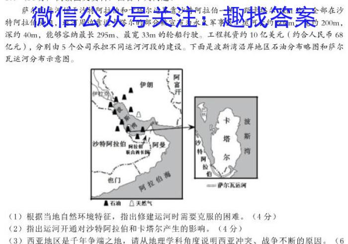 萨尔瓦运河位于沙特阿拉伯和卡塔尔边界靠沙特阿拉伯一侧,距卡塔尔1km处,全部在沙特阿拉伯境内,运河周边靠近卡塔尔的部分被宣布为永久军事区。运河长约60km,宽约200m,深约40m,能够容纳最长295m、最宽33m的轮船行驶。工程耗资约10亿美元(约合人民币68亿元),分别由5个公司承担不同运河河段的建设。下面是波斯湾沿岸地区石油分布略图和萨尔瓦运河分布示意图。(1)根据当地自然环境特征,指出修建运河时需要克服的困难。(4分)(2)指出运河开通对沙特阿拉伯和卡塔尔产生的影响。(4分)