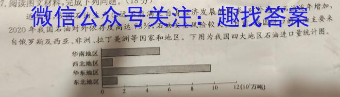 17.阅读图文材料,完成下列问题。(18分)近年来,我国石油生产已远不能满足自身经济发展的需求,对外进口石油逐年增加,2020年我国石油对外依存度高达73%,石油安全风险较大。目前,我国进口的石油主要来自俄罗斯及西亚、非洲、拉丁美洲等国家和地区。下图为我国四大地区石油进口量统计图。