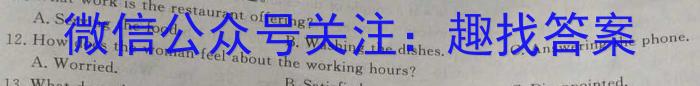 11. What work is the restaurant offering?A. Serving the food.12. How does the woman feel about the working hours?A. Worried.B. Washing the dishes.C. Answering the phone.