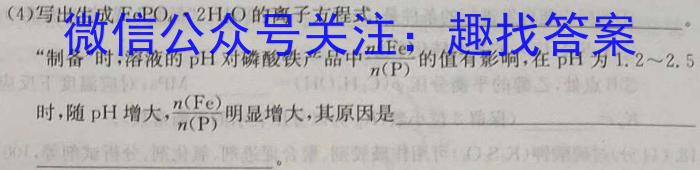 (3)加入硫酸的目的是;加人活性炭的目的是(4)写出生成FePO42H2O的离子方程式:单“制备”时,溶液的pH对磷酸铁产品中n(Fe)n(P)的值有影响,在pH为1.22.5时,随pH【增大,”n(Fe)n(P)明显增大,其原因是