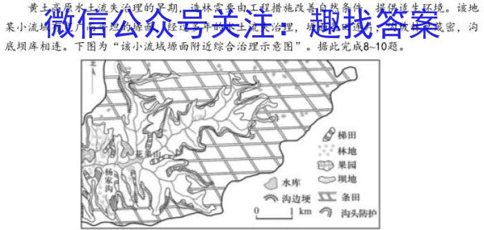 黄土高原水土流失治理的早期,造林需要由工程措施改善自然条件,提供适生环境。该地某小流域有宽广而平坦的塬面,经过多年的水土流失治理,塬面条田连片,沟坡林草茂密,沟底坝库相连。下图为“该小流域塬面附近综合治理示意图”。据此完成8~10题。