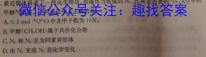 2.最近媒体报道了一些化学物质,如爆炸力极强的N5、比黄金还贵^18O2、、太空中的甲醇气团等。下列说法中不正确的是A.0.5mol^18O^16O中含中子数为10NAB.(CH3OH)属于共价化合物C.N5互为同素异形体D.由非)甲醇和N2N5变成N2是化学变化